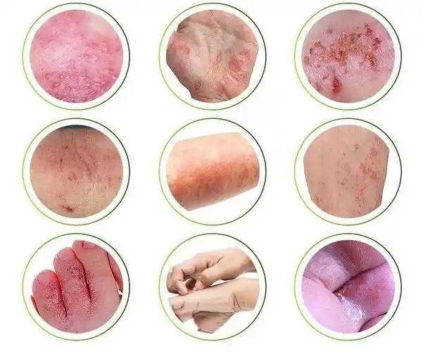 而湿疹易出现在头面部及四肢、外阴部位,皮肤上会出现红斑、水疱、丘疹,并且密集成片,是一种变态反应性疾病。