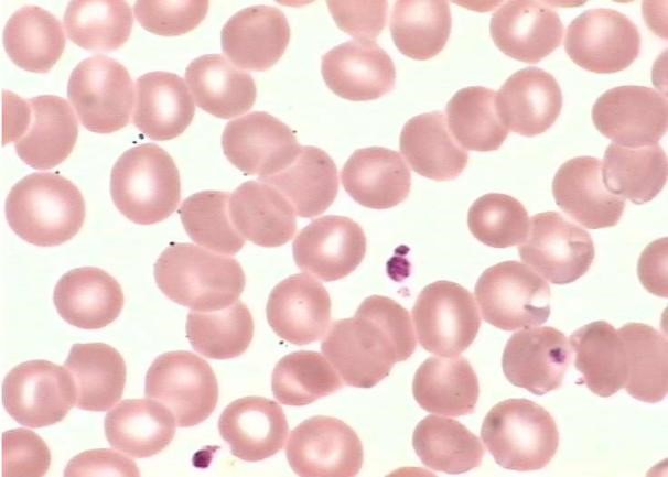 在铁元素持续匮乏的压迫下,红细胞开始扭曲形态以求生存。涂片中可见: