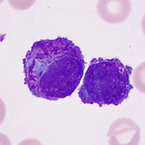 巨型早幼粒细胞(18-20微米)占据视野