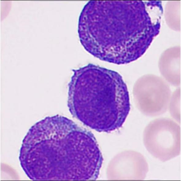 数以千计的早幼粒细胞堆积在视野中,像卡在传送带上的半成品。这些本该继续发育的细胞,突然集体停止了成长。它们的体积比正常细胞大上一圈,仿佛膨胀的气球,细胞核不是规整的圆形,而是扭成怪异的花生状或马蹄形。最触目惊心的是胞浆里撒满的紫色颗粒——本该用于杀灭细菌的武器弹药,此刻却像胡乱堆放的炸药包,随时可能引爆整个造血系统。